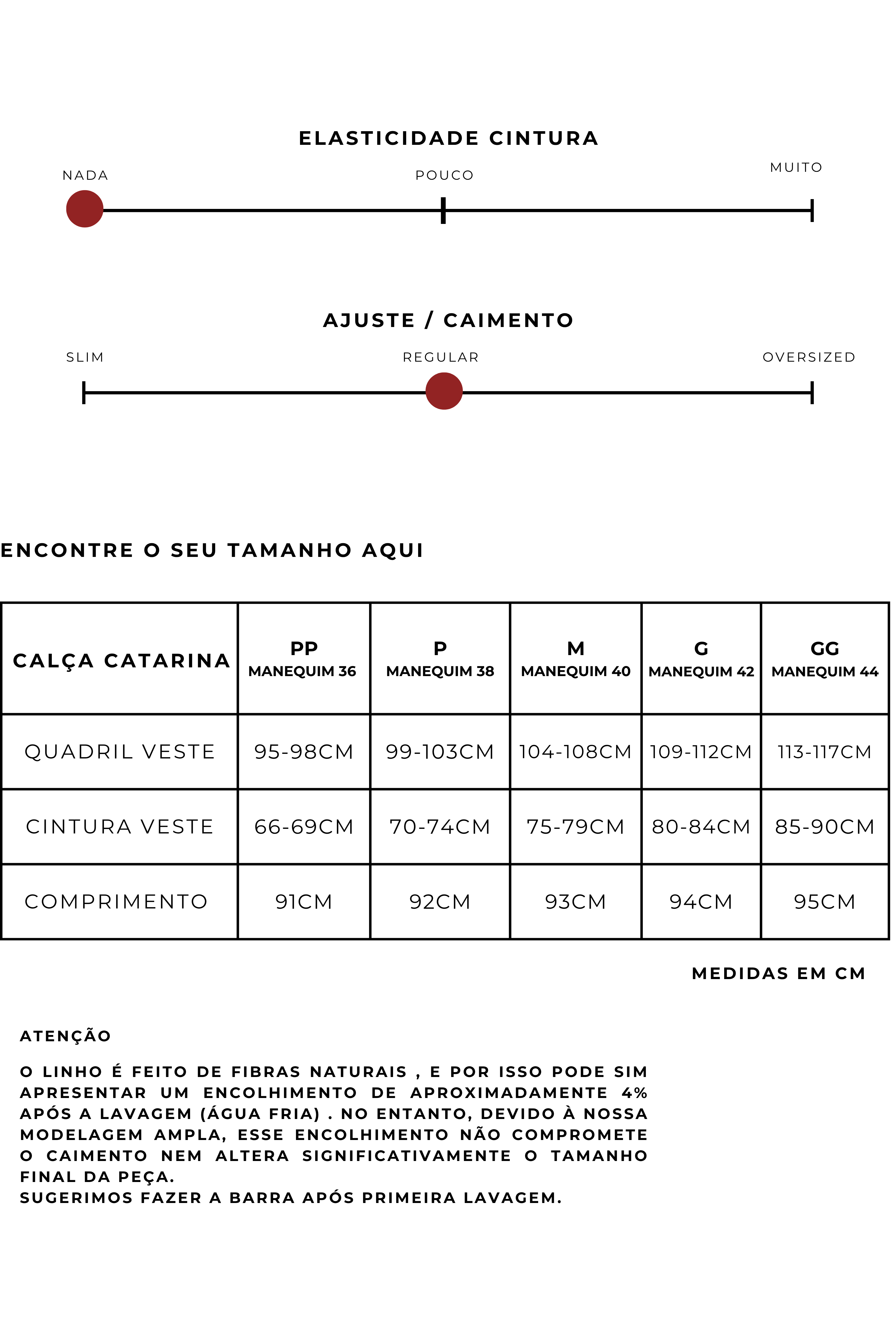 Descubra a elegância da Calça Catarina Marrom, perfeita para ocasiões sofisticadas. Com um corte pantacourt que destaca a modernidade, esta calça é confeccionada em tecido misto de linho, garantindo leveza e conforto. Seus detalhes incluem passantes largos e bolsos frontais e traseiros, além de pences nas costas que proporcionam um ajuste impecável. Ideal para compor looks refinados, é um item essencial no guarda-roupa de quem busca estilo e praticidade.