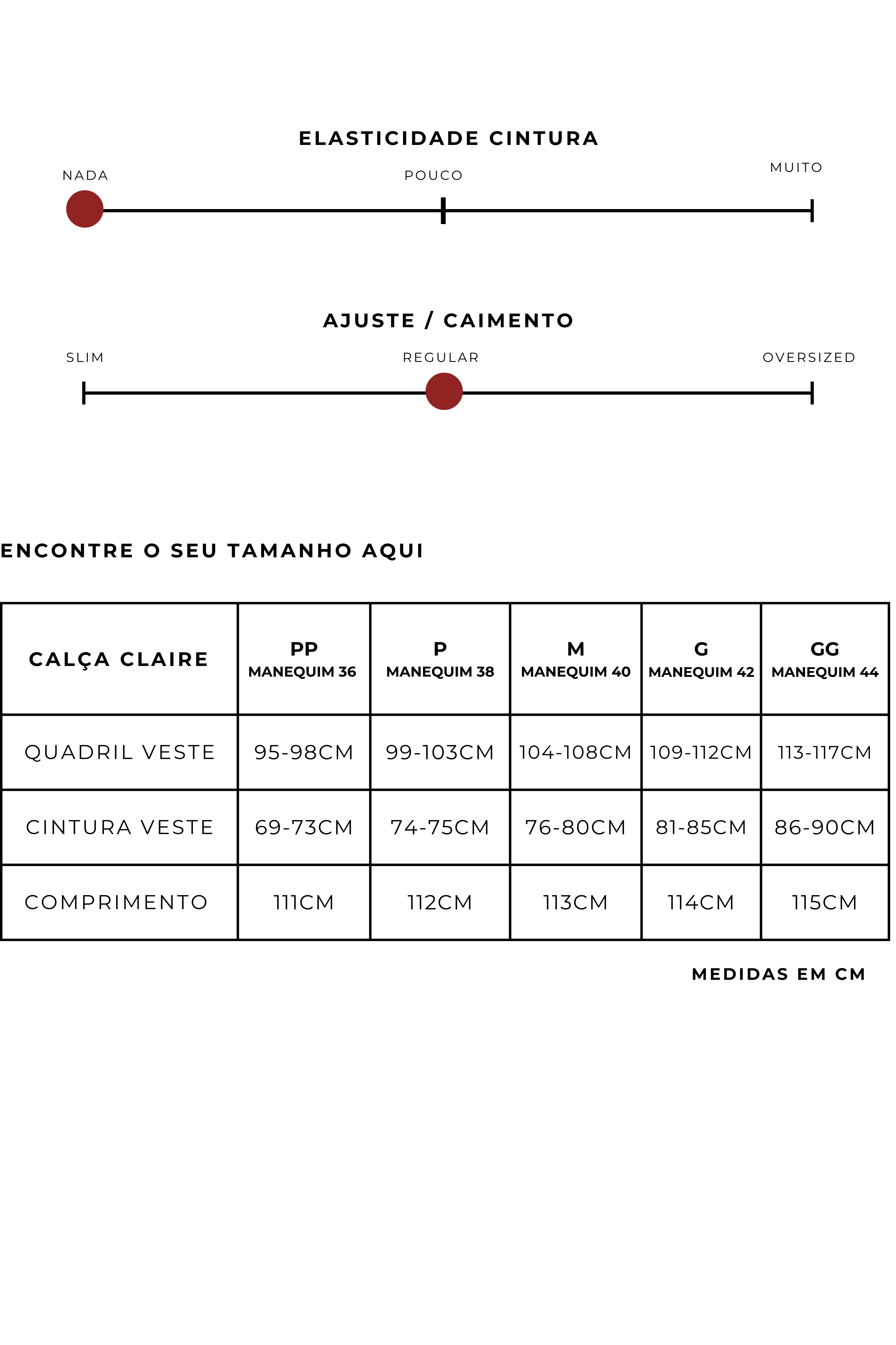 Descubra a sofisticação da Calça Claire Vinho Escuro, perfeita para quem valoriza conforto e estilo atemporal. Confeccionada em algodão com liocel, possui modelagem reta e detalhes de recorte na frente, que destacam o design elegante. Conta com bolsos laterais e nas costas, fechamento em botão e zíper, além de passante mais largo na lateral, garantindo praticidade e modernidade ao look.