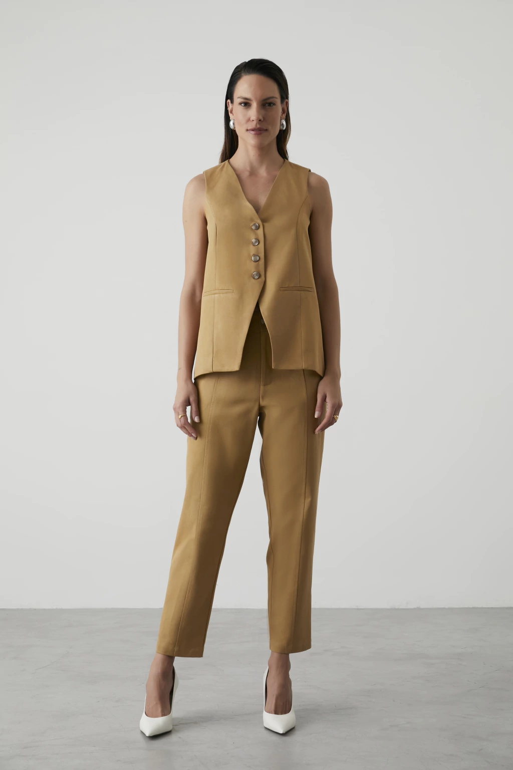 Descubra a sofisticação da Calça Michele Caramelo, perfeita para quem busca elegância e conforto. Confeccionada em algodão misto, destaca-se pelo passante duplo, fechamento em zíper e botão, além de bolsos laterais e costas funcionais. A nervura frontal adiciona um toque de estilo, enquanto a modelagem mais cenouras e o cós mais largo garantem um visual moderno e confortável.