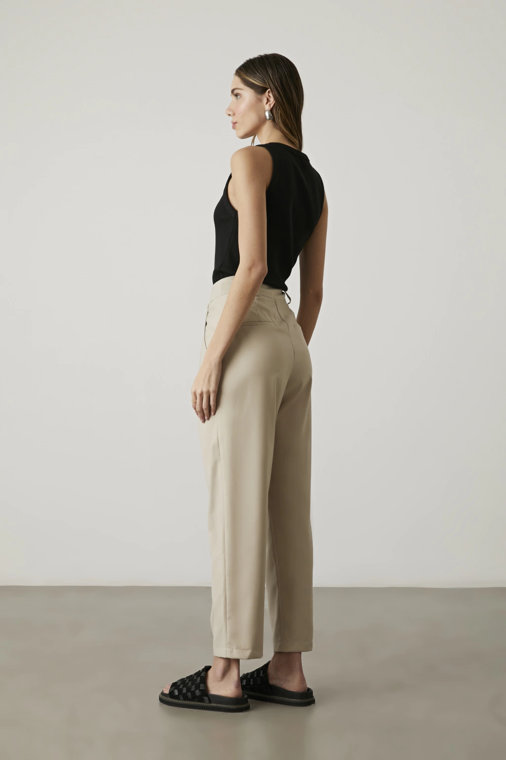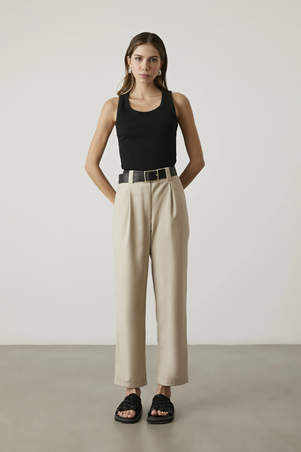 Descubra a elegância da Calça Natalie Bege, uma peça indispensável para compor looks sofisticados. Modelagem ajustada ao corpo com fechamento frontal por zíper e botão e passante largo para cinto. Apresenta prega frontal e bolso faca, garantindo praticidade. A parte traseira possui pence para um caimento perfeito. Sugerimos um tamanho maior para mais conforto.