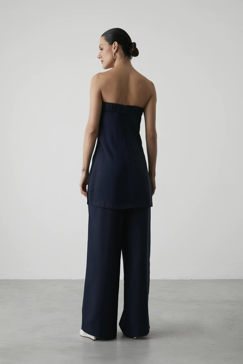 Descubra o charme da Calça Nayara Marinho, perfeita para quem busca sofisticação e conforto. Com modelagem pantalona, traz fechamento em zíper e botão, bolsos laterais e traseiros, cós e passantes largos, além de elegante detalhe de pregas na frente. Ideal para compor looks refinados.