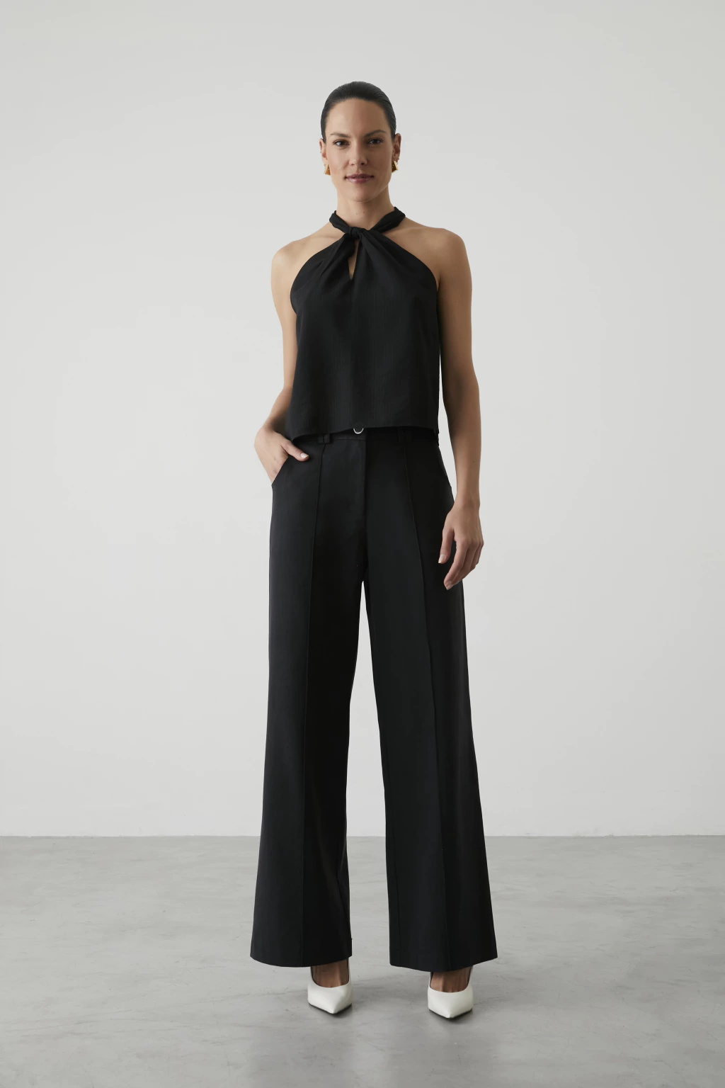 Descubra a elegância da Calça Pietra Preto, projetada para aqueles que apreciam detalhes refinados. Confeccionada em modelagem reta de sarja, ela oferece um ajuste sofisticado. Destaca-se pelo fechamento em zíper e botão com detalhe em níquel. Os bolsos laterais e nas costas proporcionam praticidade, enquanto o detalhe em nervura na perna e o passante duplo adicionam um toque moderno. O detalhe de pesponto no cós completa o visual com sutileza.