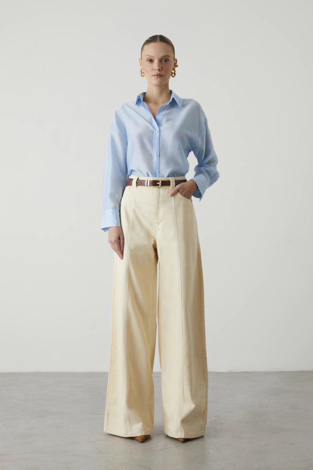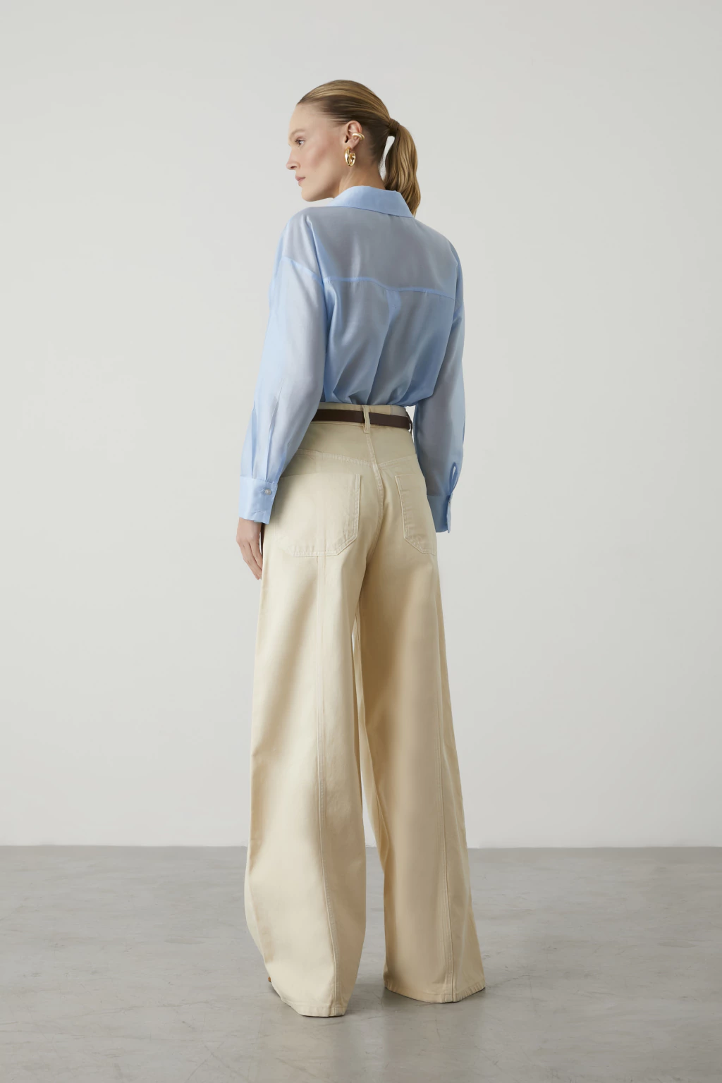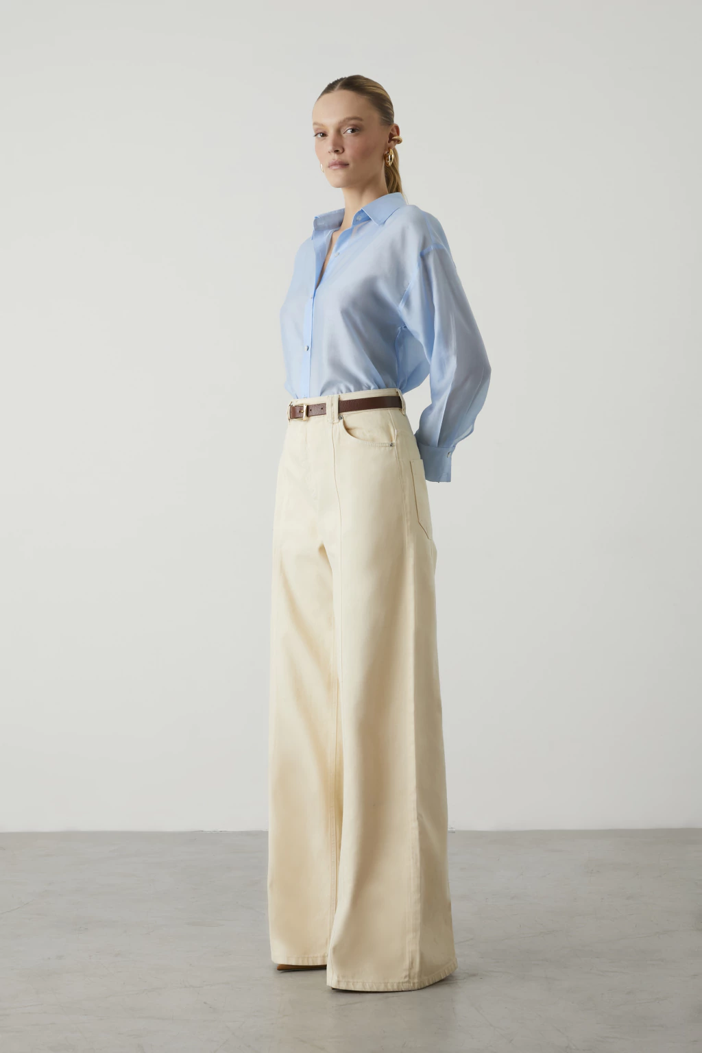 Descubra a sofisticação da Camisa Paola Azul, uma peça elegante e moderna. Este modelo oversized apresenta fechamento em botões na frente e punhos, ideal para quem busca estilo e conforto. Feita de tecido leve com um toque acetinado, possui uma leve transparência que adiciona charme e elegância. Transforme seus looks com esta camisa versátil e atemporal.