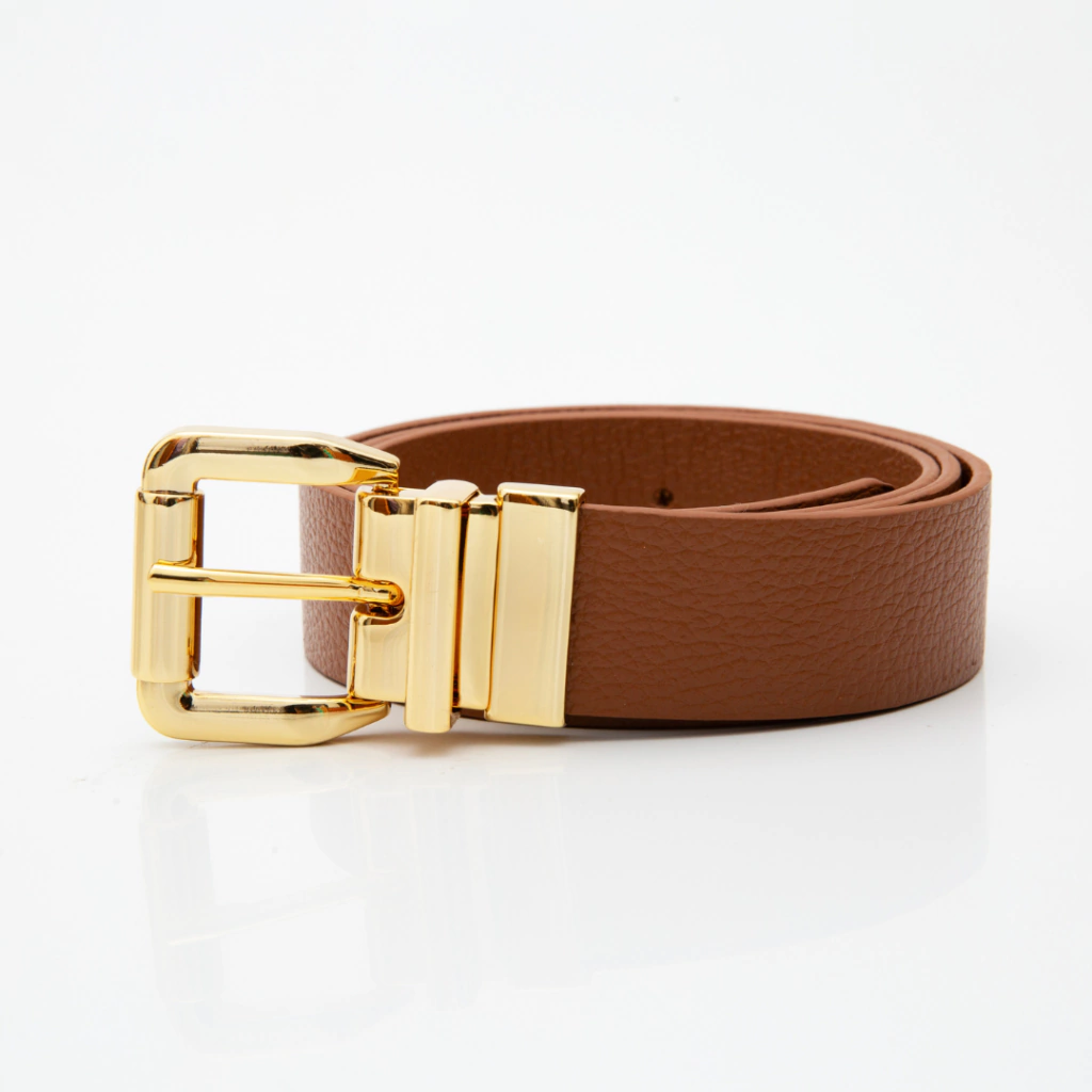 Descubra a elegância do Cinto Pamela Caramelo com Dourado, um acessório indispensável para valorizar qualquer look. Confeccionado em 100% couro caramelo com forro também em couro para maior durabilidade e conforto. O destaque fica por conta da fivela de metal dourado e do passante duplo metalizado, que trazem sofisticação e modernidade ao seu visual. Aposte em qualidade e estilo atemporal!