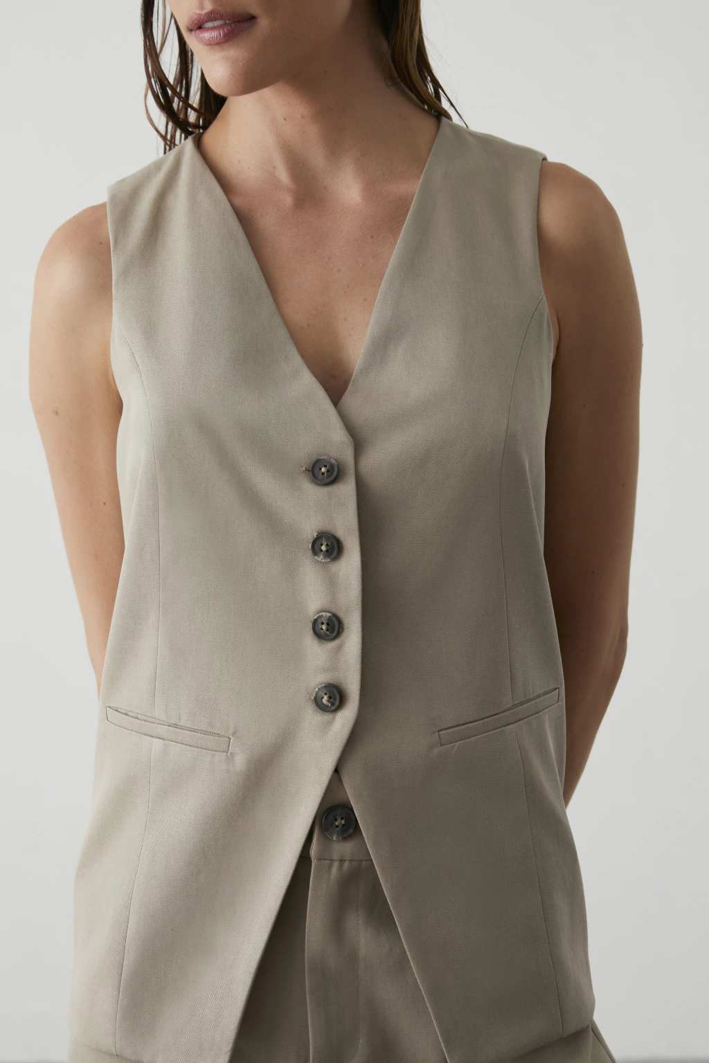 Descubra a elegância do Colete Michele Bege, uma peça chave para quem busca estilo e conforto. Feito em algodão misto, apresenta fechamento em botão e decote em V, adicionando sofisticação. O detalhe de recorte na barra e o detalhe de lábio frontal trazem um toque moderno. Com pesponto frente e modelagem mais alongada, é perfeito para um visual refinado.