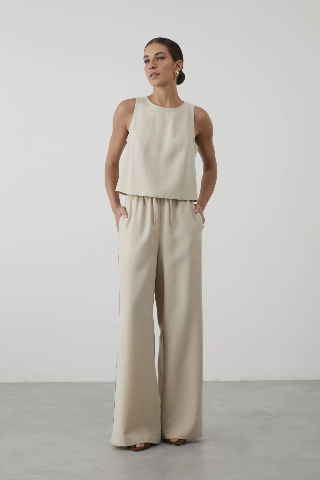 Descubra a elegância da Regata Gisele Bege, perfeita para quem aprecia estilo e conforto. Com modelagem quadrada e gola redonda, destaca-se pelo detalhe pespontado nas laterais, fechamento com botão nas costas e um sutil detalhe de abertura lateral na cava. Ideal para compor looks modernos e sofisticados em qualquer ocasião. Aposte nessa peça versátil e valorize seu visual!