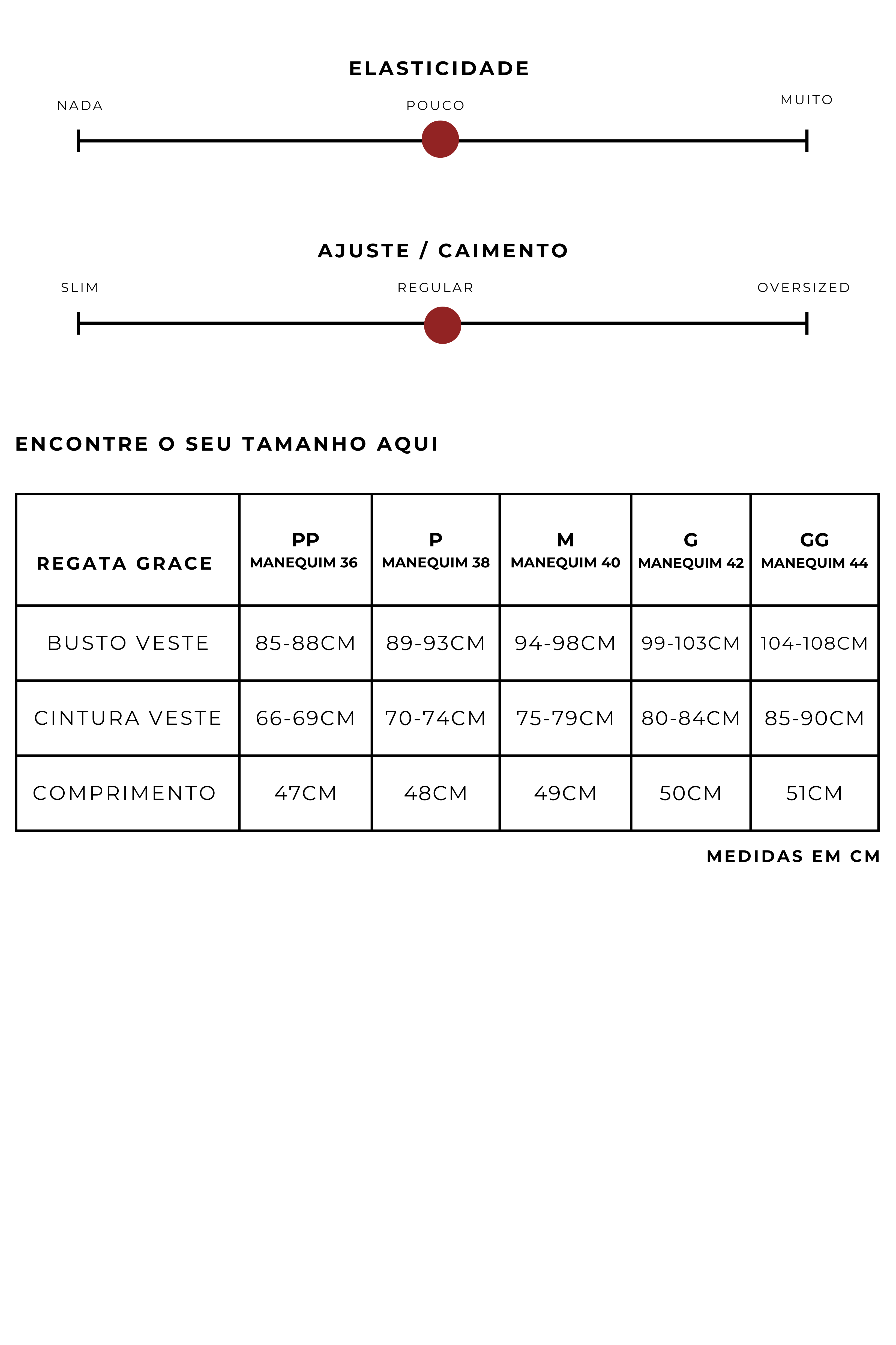 Descubra a sofisticação da Regata Grace Preto, perfeita para elevar seus looks do dia a dia. Confeccionada em malha leve, destaca-se pelo detalhe de barra assimétrica, proporcionando um toque moderno e exclusivo. O leve detalhe de prega lateral valoriza a silhueta e adiciona charme à peça. Ideal para compor produções elegantes com conforto e estilo.