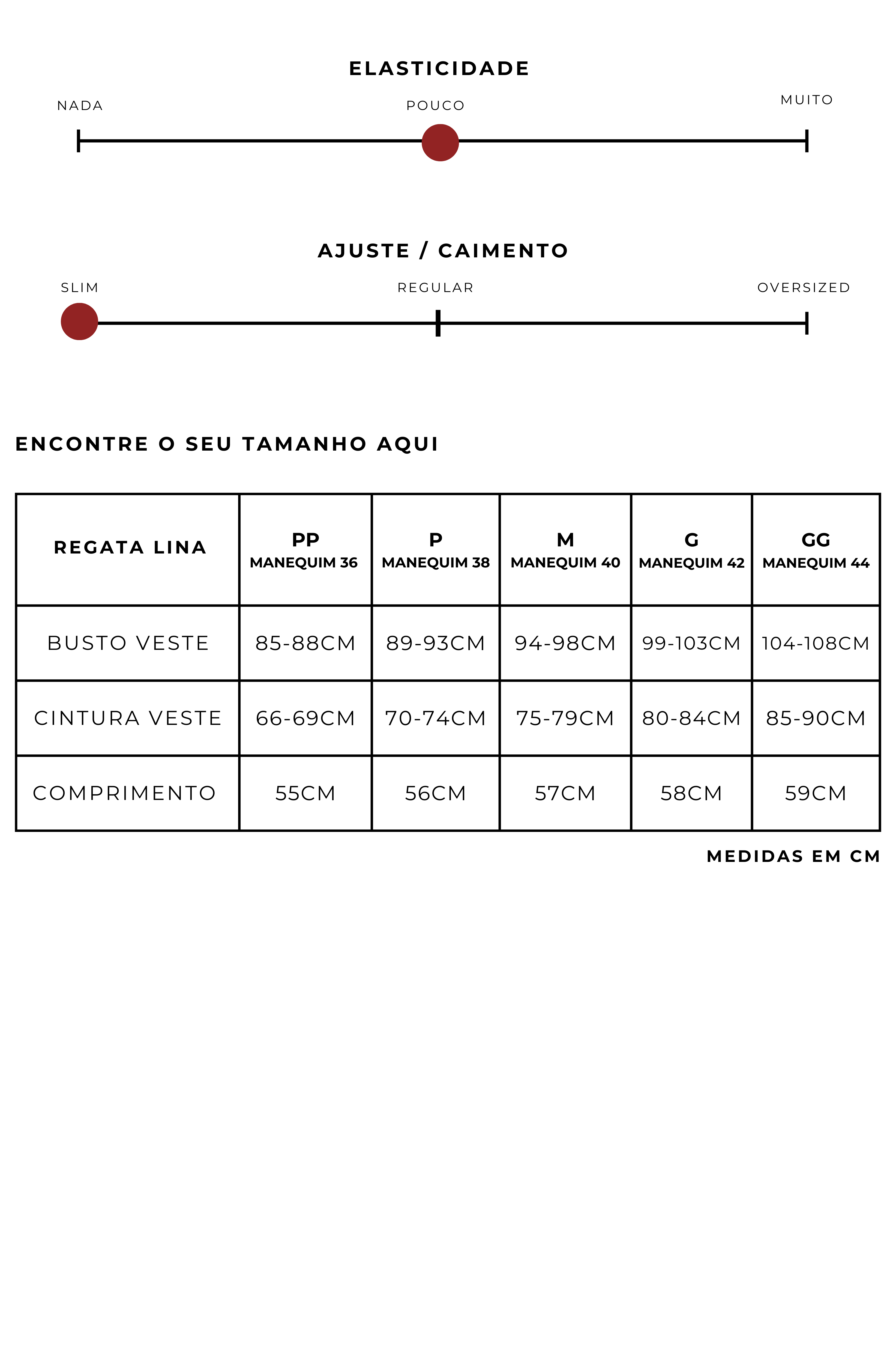 Descubra a elegância atemporal da Regata Lina Off White com Preto. Confeccionada em malha ribana canelada mais estruturada, essa peça destaca-se pelo decote reto frente costas e pelas alças galão, que garantem um visual sofisticado. Ideal para compor looks versáteis, a Regata Lina é perfeita para qualquer ocasião, oferecendo conforto e estilo. Sinta-se confiante com essa peça essencial no seu guarda-roupa!