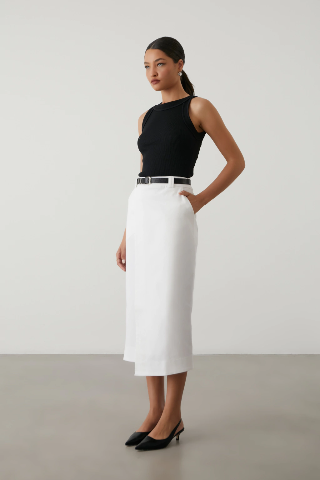 Descubra a elegância da Saia Clarisse Off White, uma peça sofisticada que combina estilo e conforto. Com tecido mais estruturado e modelo envelope, ela oferece um visual moderno e elegante. O fechamento em zíper invisível lateral e o comprimento midi garantem um caimento perfeito. Destaque para o passante duplo e os bolsos frontais e costas, proporcionando praticidade. As pences nas costas adicionam um ajuste impecável. Ideal para compor looks refinados.