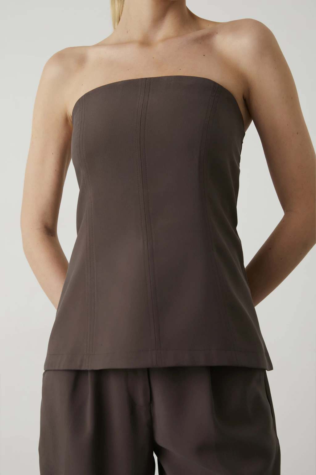 Descubra a elegância da Blusa Tomara Que Caia Tarsila Marrom. Com modelagem tomara que caia, apresenta detalhe de pence na frente e costas que valoriza a silhueta. O elástico nas costas proporciona mais conforto, enquanto o fechamento em zíper invisível garante praticidade e acabamento sofisticado. Ideal para composições modernas e refinadas, é a escolha perfeita para quem busca charme e versatilidade.